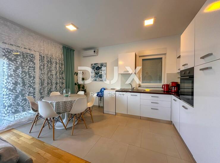 Stan se nalazi na vrlo traženoj lokaciji, u blizini svih bitnih sadržaja kao što su trgovine, restorani, škole i javni prijevoz, čineći svakodnevni život iznimno praktičnim. Uz to, centar Opatije te prve plaže udaljeni su svega sedam minuta vožnje, što omogućuje brz i jednostavan pristup moru i svim radostima koje nudi obalni
