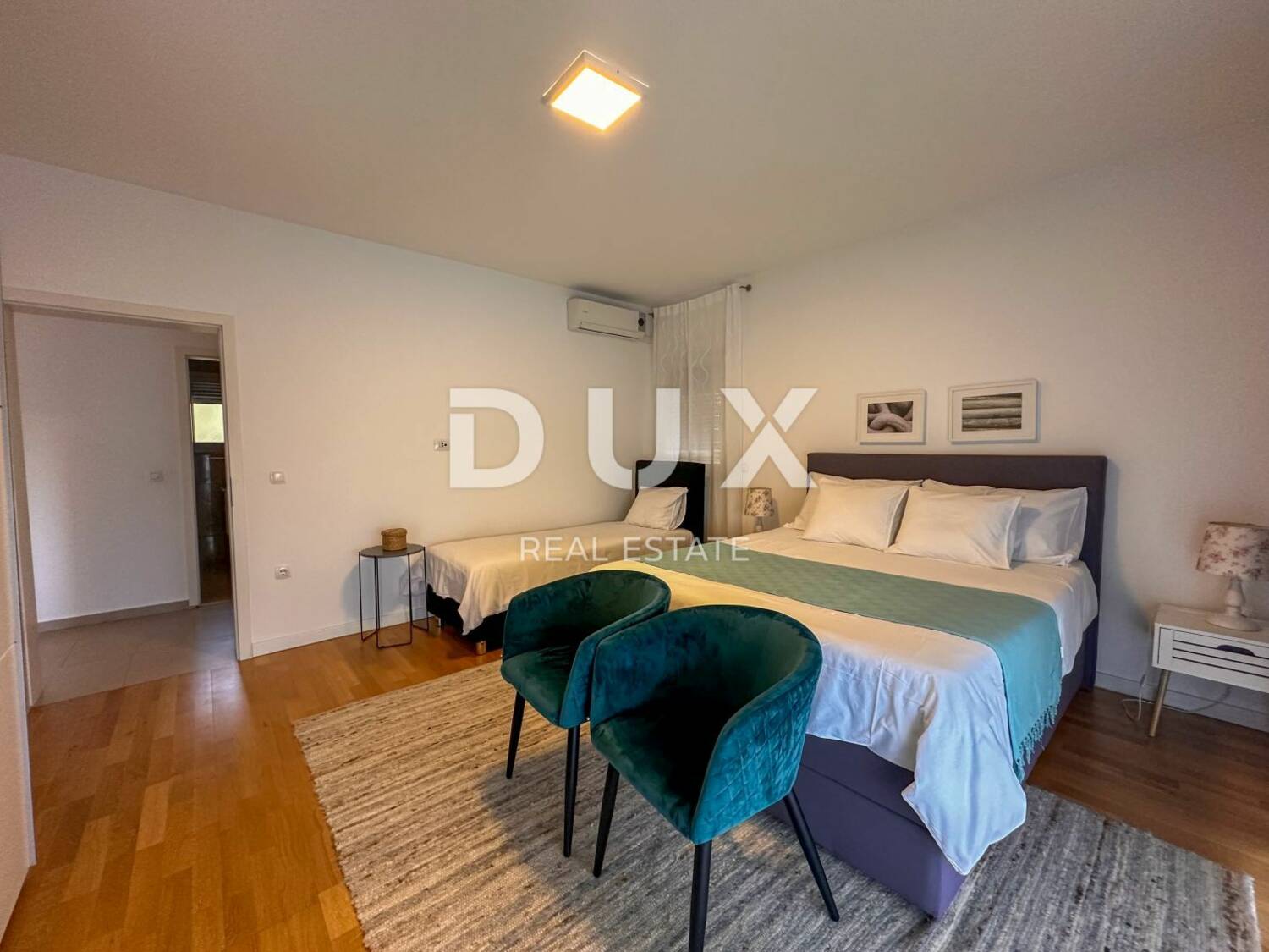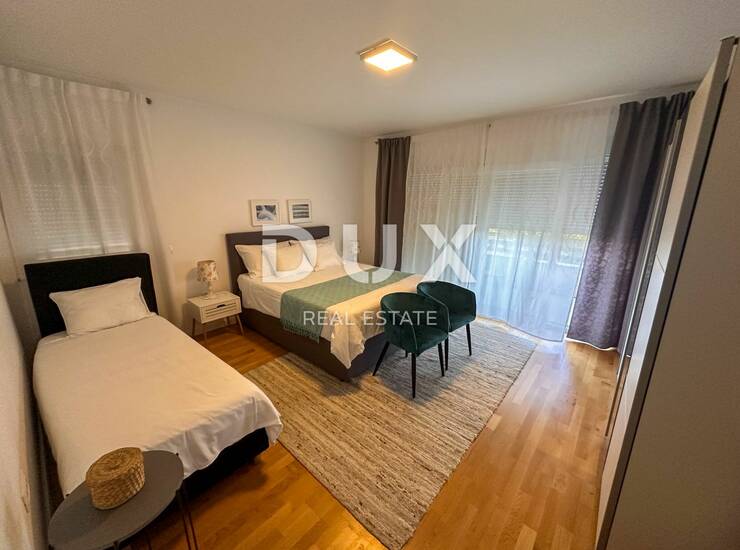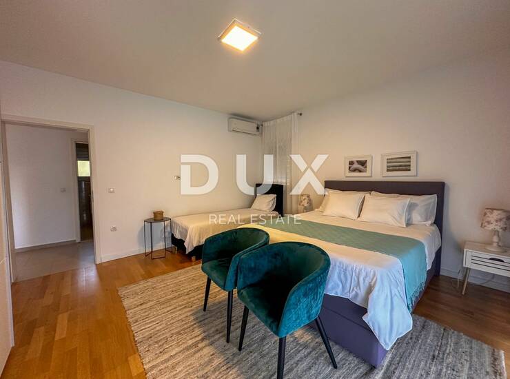Stan je potpuno namješten i opremljen, spreman za useljenje bez dodatnih ulaganja. Obiluje prirodnom toplinom i svjetlošću tijekom cijelog dana zahvaljujući velikim staklenim površinama i pametno osmišljenom rasporedu prostorija. Grijanje je riješeno putem visokokvalitetnih dizalica topline, što osigurava ekonomičnost i ekološku prihvatljivost. Dodatno, svaka spavaća soba i dnevni boravak opremljeni su klima uređajima, što pruža dodatnu udobnost tijekom ljetnih mjeseci.