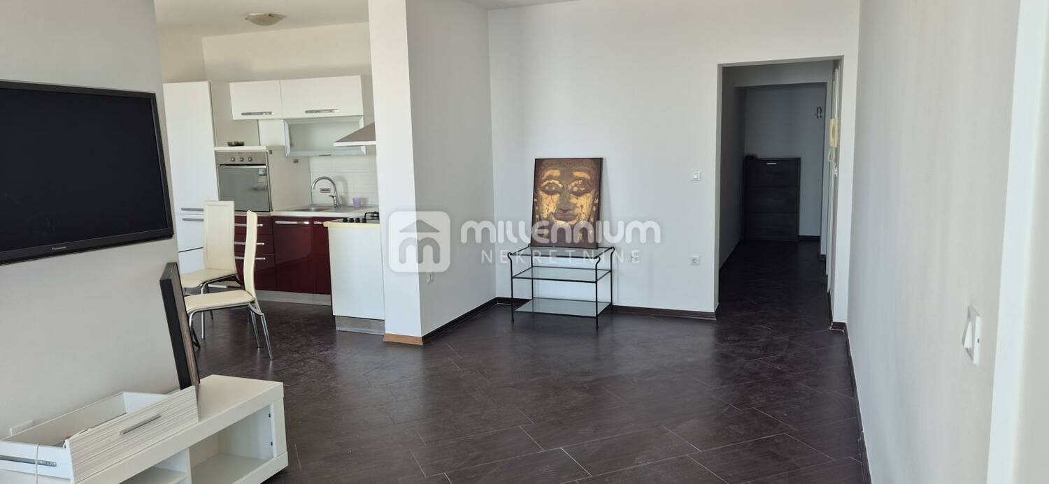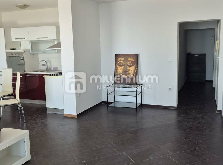 Stan se ističe odličnim rasporedom i obiljem prirodnog svjetla. Sastoji se od komforne spavaće sobe s praktičnim walk-in ormarom, moderno organiziranog otvorenog prostora koji objedinjuje kuhinju, blagovaonicu i dnevni boravak, iz kojeg se izlazi na prostranu lođu s prekrasnim panoramskim pogledom. Dodatno, stan uključuje kupaonicu i hodnik koji povezuje sve prostorije na funkcionalan način.
