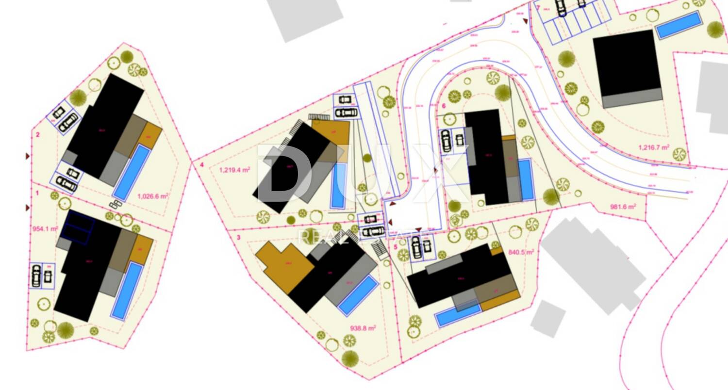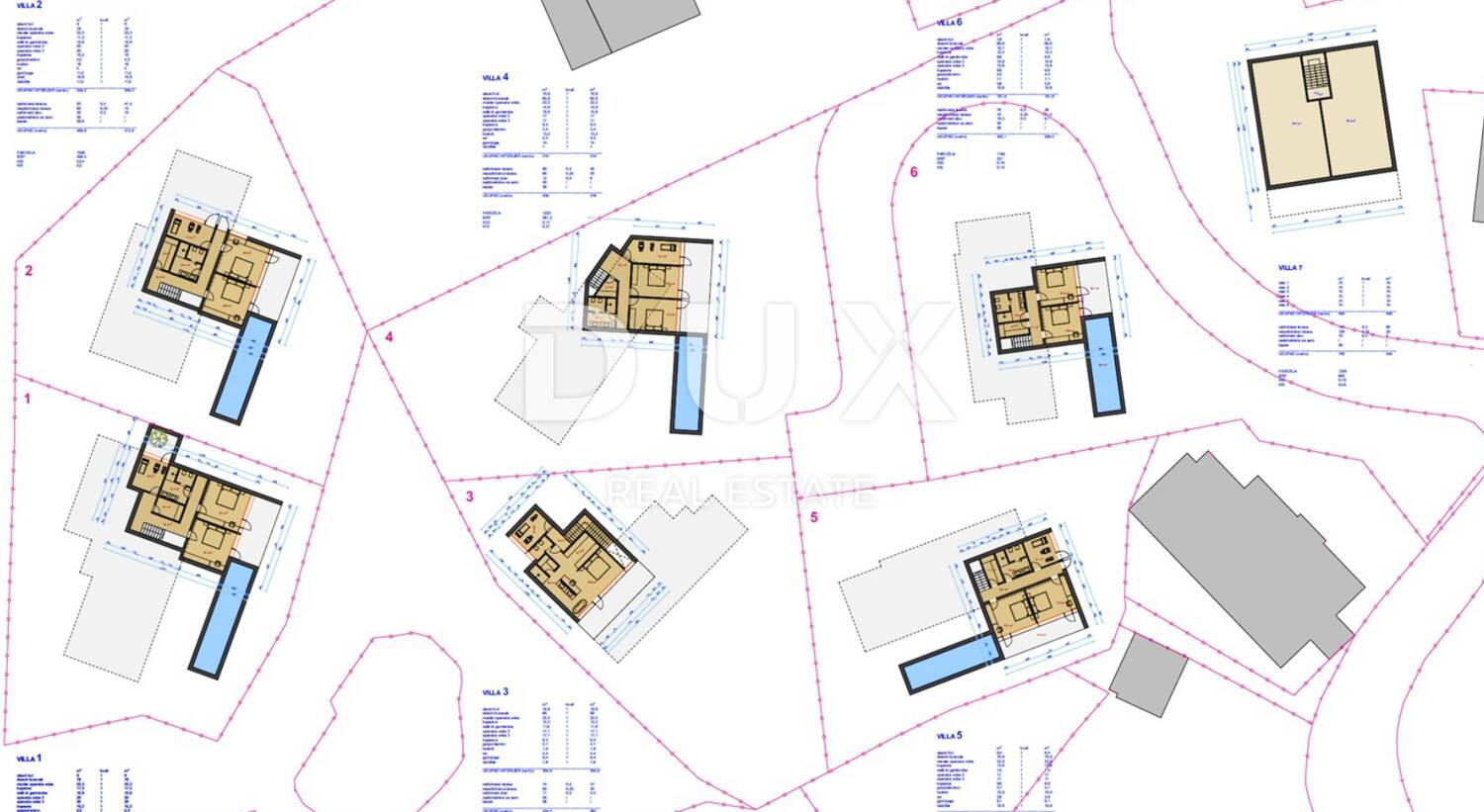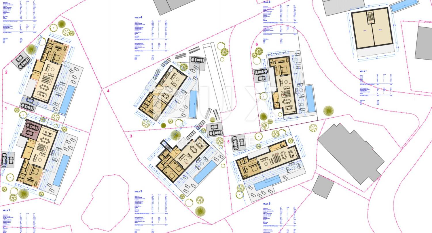 MIHOTIĆI, ZEMLJIŠTE S IDEJNIM PLANOM ZA 7 VILLA S BAZENOM