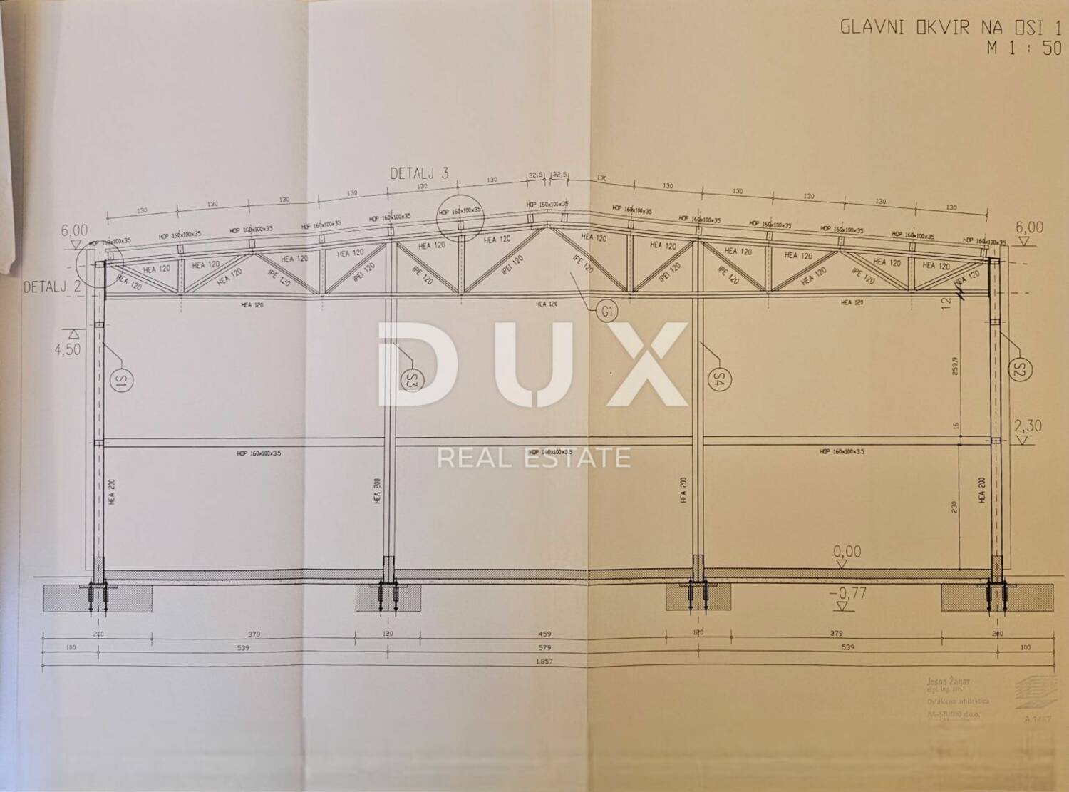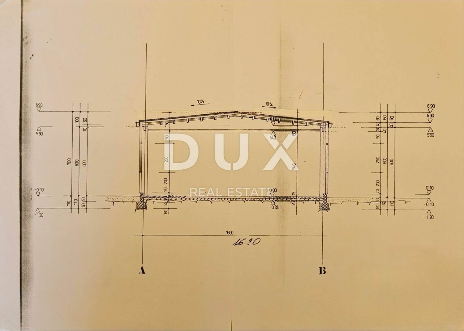 PERMANI, JURDANI-građevinsko zemljište 2000m2 s građ. dozvolom za halu od 600m2 (namjena: trgovačka, zanatska, industrijska)