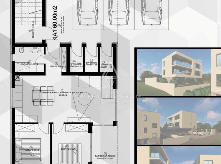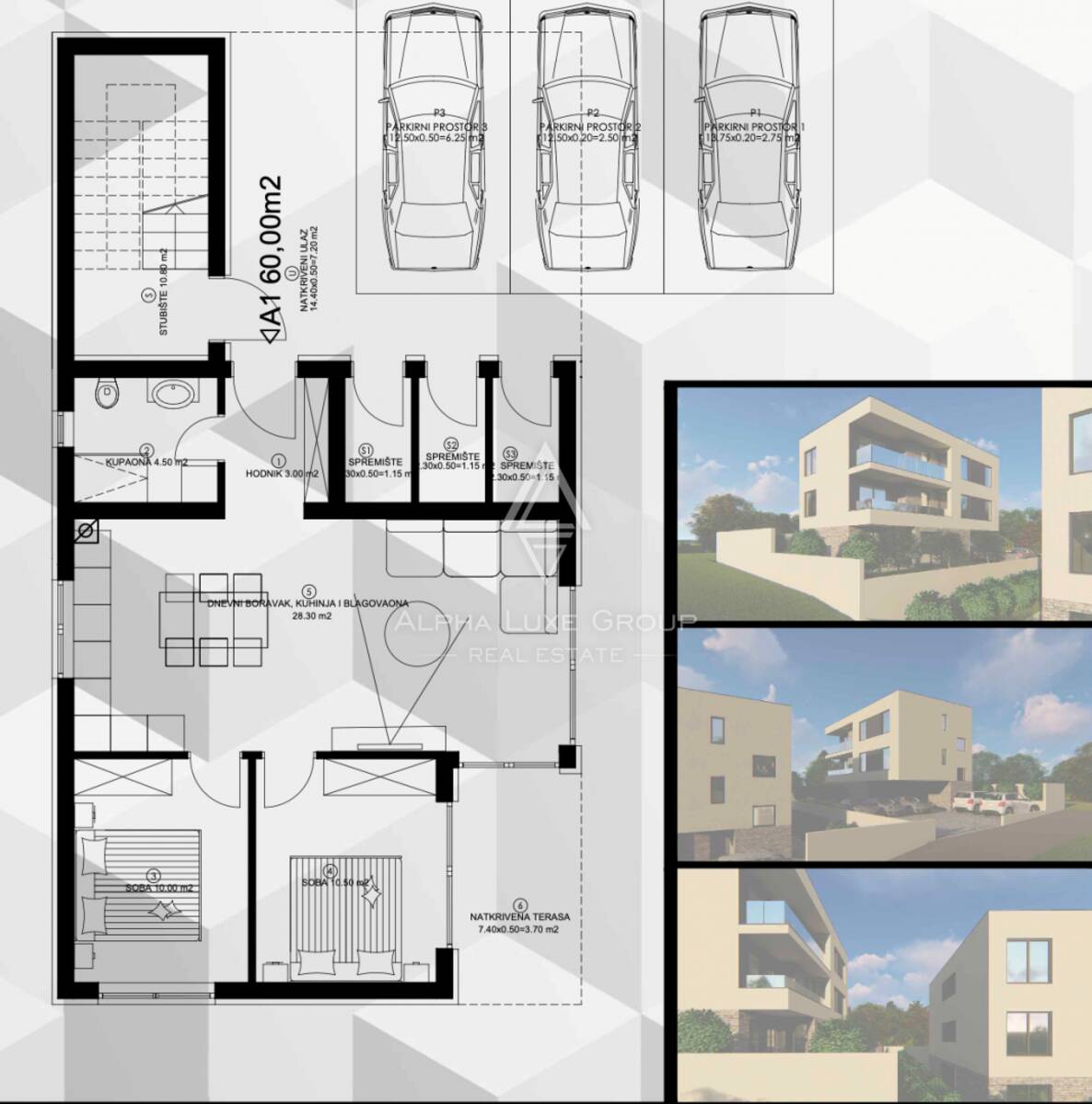 Smješten samo 450 metara od mora, ovaj moderan stan u prizemlju dio je ekskluzivnog manjeg stambenog projekta koji se sastoji od dvije zgrade s ukupno šest stanova, pružajući privatnost i mirno okruženje za život.