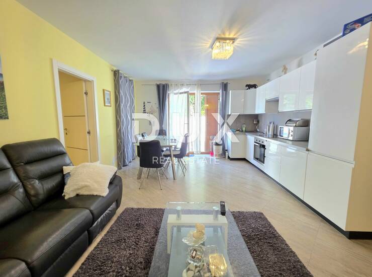 Ulaz u kuću vodi nas u prostrano prizemlje koncipirano kao dnevna zona, s otvorenim tlocrtom koji spaja dnevni boravak, blagovaonicu i modernu kuhinju u skladnu i svijetlu cjelinu. Iz prizemlja, izlazi se direktno na ograđenu okućnicu gdje nas čeka bazen od 24 m², sunčalište, natkrivena terasa savršena za ljetne večere i dovoljno mjesta za bezbrižnu igru, zabavu ili opuštanje.