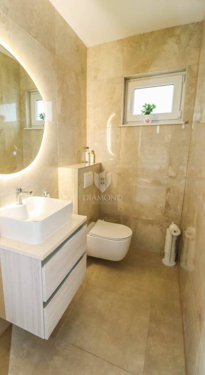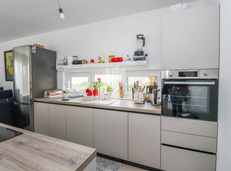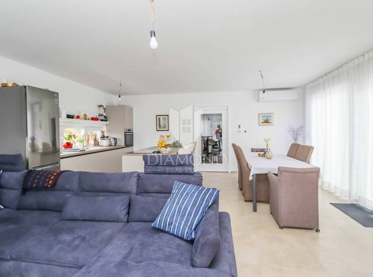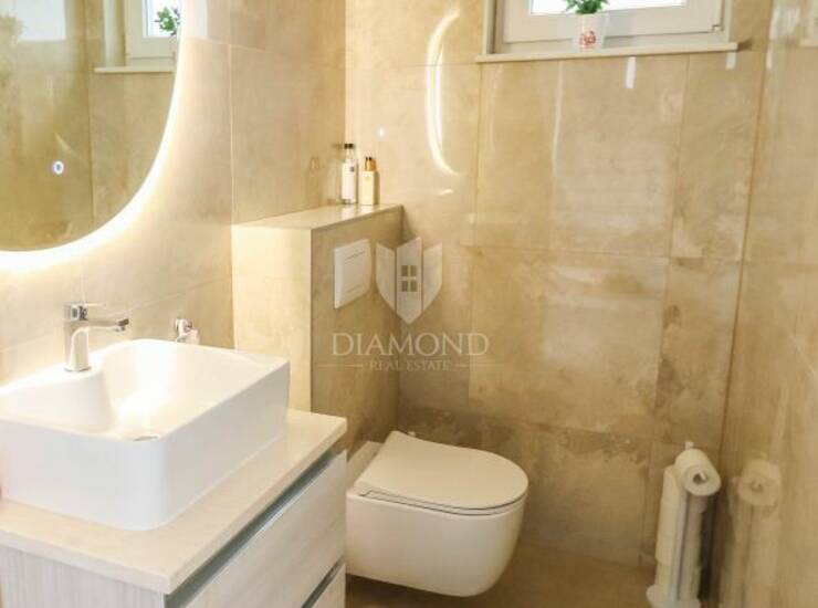 Kuća je kompletno namještena i izgrađena prema visokim standardima suvremene gradnje. Opremljena je podnim grijanjem na toplinsku pumpu te kvalitetnom fasadom s vrhunskom izolacijom od prešane kamene vune, čime se osigurava visoka energetska učinkovitost i ugodan boravak tijekom cijele godine.