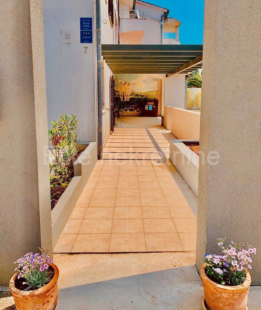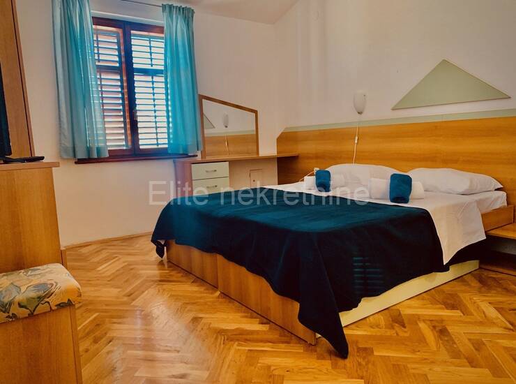 Na prodaju je kuća na odličnoj lokaciji u blizini mora sa apartmanima, sobama i restoranom na parceli ukupne površine 680m2. Uz kuću se nalazi bazen, kamin za roštilj i parkirna mjesta.