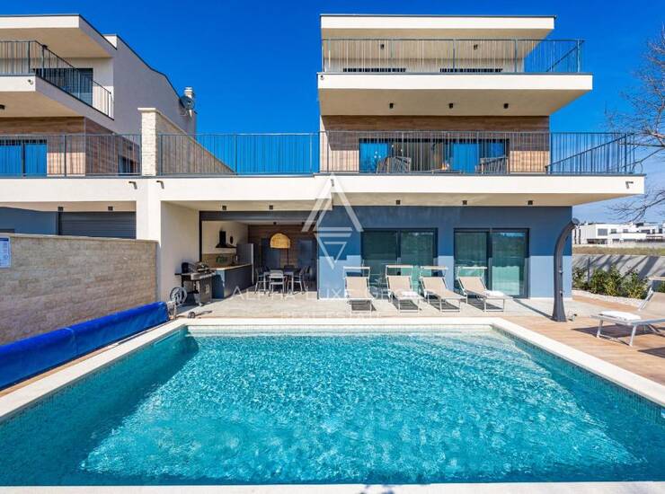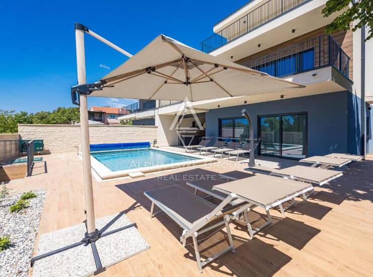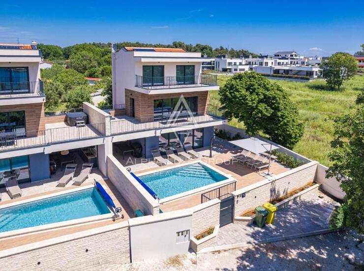 Smještena u jednom od najpoželjnijih obalnih zona u Banjolama, ova moderna dvojna vila nudi iznimnu udobnost, profinjen suvremeni dizajn i vrhunsku lokaciju svega nekoliko koraka od plaže. Raspoređena na tri etaže, kuća se ističe svijetlim interijerima, prostranim terasama i pažljivo oblikovanim vanjskim prostorima idealnima za cjelogodišnje uživanje.