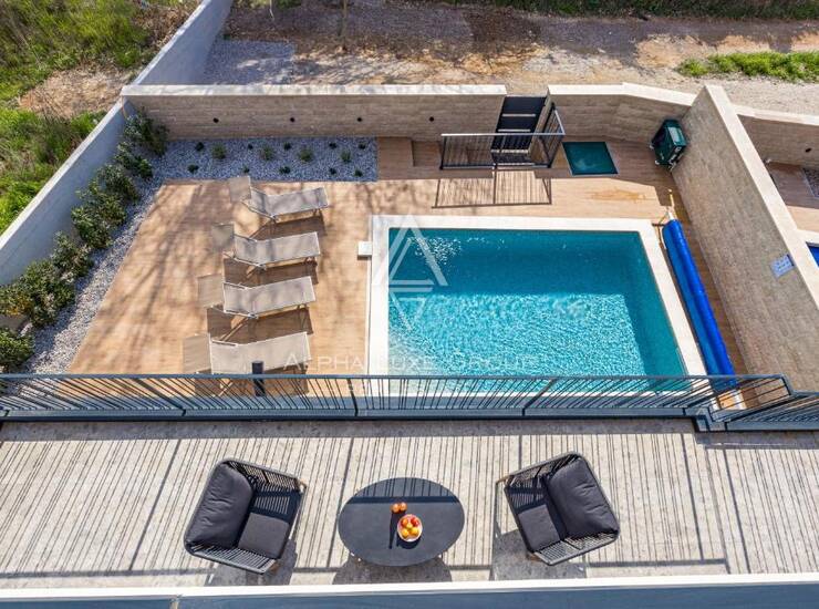Na posljednjem katu smještene su dvije prostrane spavaće sobe, svaka sa svojom kupaonicom, te privatna terasa s impresivnim panoramskim pogledom na obalu. Zahvaljujući položaju i orijentaciji, ovaj kat nudi iznimnu privatnost i obilje prirodne svjetlosti.