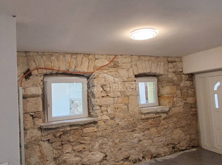 Kuća je temeljito renovirana prema projektu, te je obnovljen krov i fasada, napravljene su dvije međukatne ploče, ugrađena je PVC stolarija i promijenjene su kompletne instalacije struje i vode. Smještena u centru naselja, kuća nudi jednostavan pristup svim pogodnostima koje grad nudi. Grijanje na struju i klima uređaj osiguravaju udobnost u svim godišnjim dobima, dok dvorište pruža miran kutak za opuštanje.