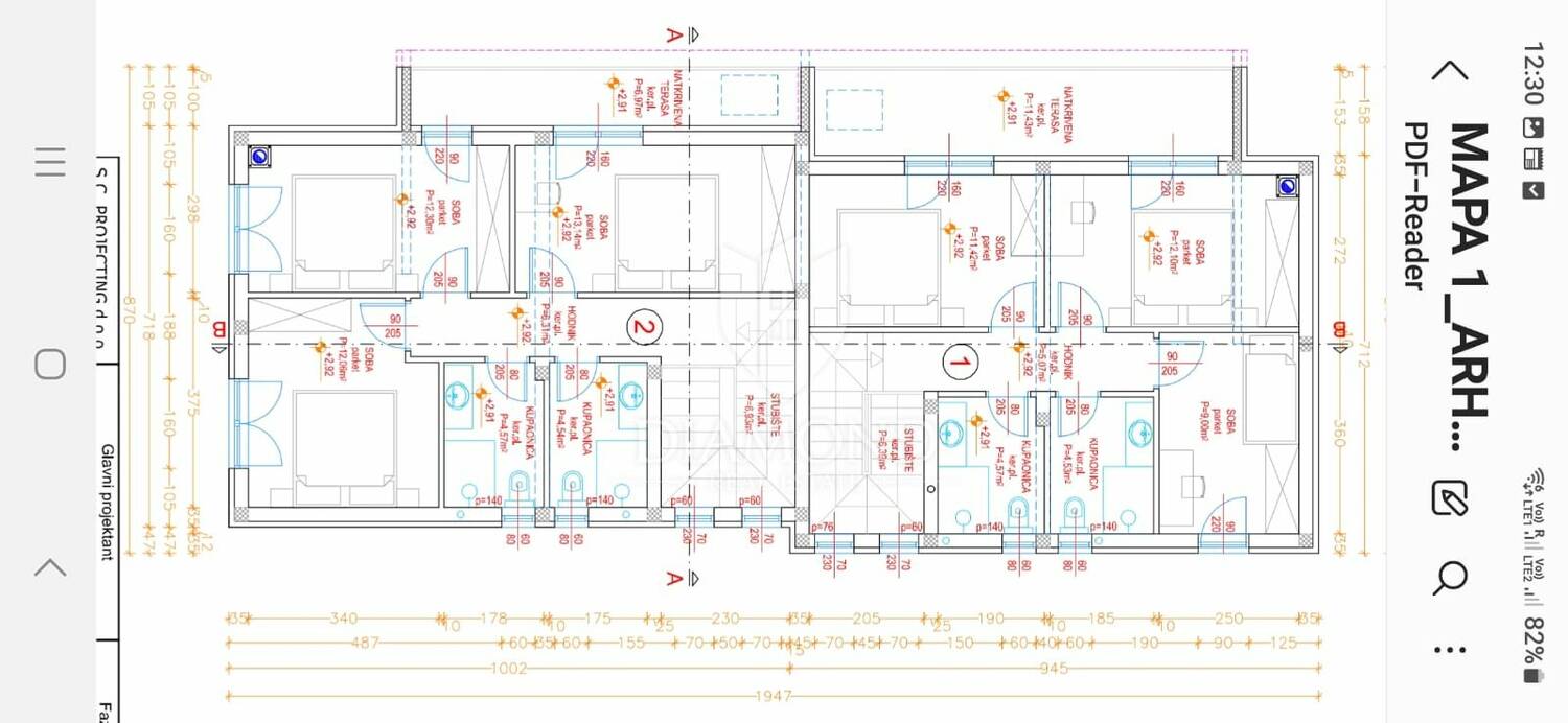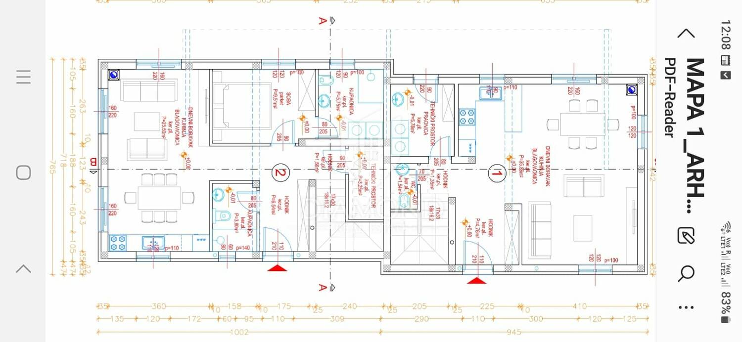 Riječ je o dvojnoj kući ukupne površine 230 m² koja se prodaje u rohbau fazi, što budućem vlasniku pruža mogućnost potpunog prilagođavanja prostora vlastitim željama i potrebama. Prizemlje je organizirano u dvije odvojene jedinice, svaka s vlastitom kuhinjom otvorenog koncepta povezanom s blagovaonicom i dnevnim boravkom. U jednoj jedinici nalazi se i spavaća soba s pripadajućom kupaonicom te dodatna kupaonica, uz mogućnost izgradnje bazena u dvorištu, kao i tehnička soba i hodnik sa stepeništem. Druga jedinica uključuje dodatni WC, tehničku sobu i hodnik sa stepeništem. Na katu se u svakoj jedinici nalaze po tri spavaće sobe i dvije kupaonice. Okućnica površine 426 m² nudi vrt i četiri parkirna mjesta, pružajući dodatnu funkcionalnost i komfor.