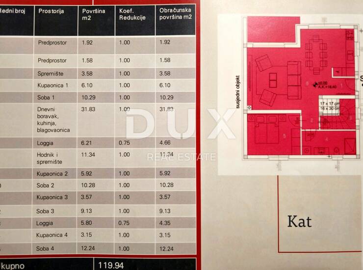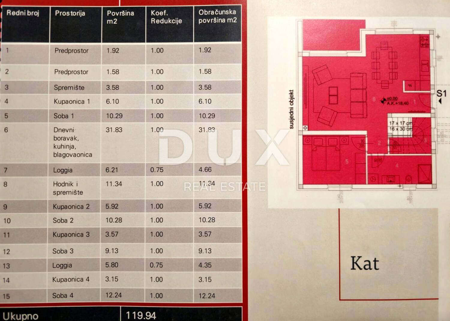 Ova kvalitetna moderna novogradnja sastoji se od ukupnih 119,94m2 stambenoga prostora koji se dijeli na dvije etaže kuće, a svaki kvadratni metar iskorišten je maksimalno.