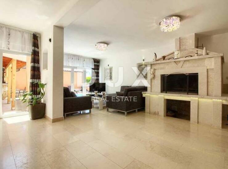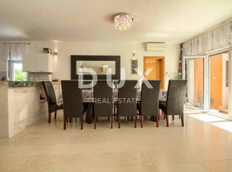 Potpuno opremljena kuhinja s posuđem nudi vam puno udobnosti za kuhanje za cijelu obitelj. U blagovaonici je veliki stol za 14 osoba i na terasi uz roštilj. Iz dnevnog boravka, blagovaonice i kuhinje imate izlaz iz prekrasnog vrta koji vam pruža ugodnu i privatnu atmosferu s bazenom od 32m2. Bazen se grije sustavom Solgar. Vila ima također nudi jacuzzi i stolni tenis. Vila je u potpunosti namještena i kao takva se i prodaje. U funkciji je turističkog najma već dugi niz godina tako da novi vlasnik dobiva i dobro uhodan posao.