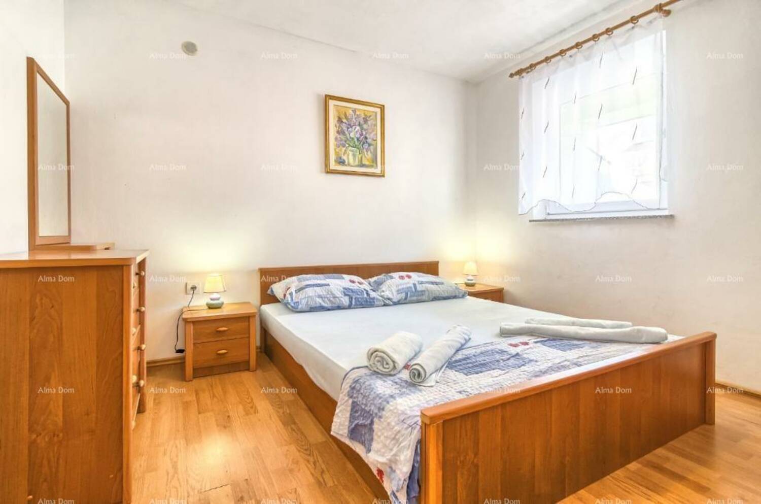 Kuća se sastoji dva odvojena stana, svaki sa zasebnim ulazom, parkirnim mjestom i dijelom vrta.