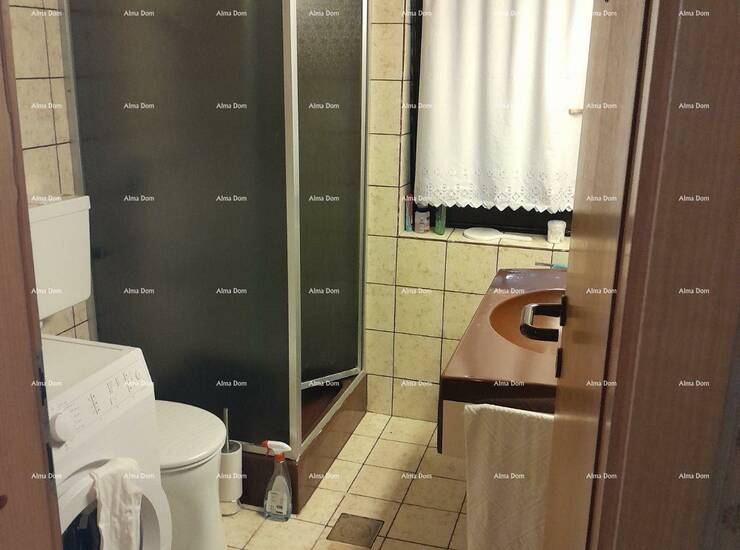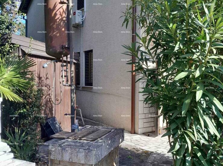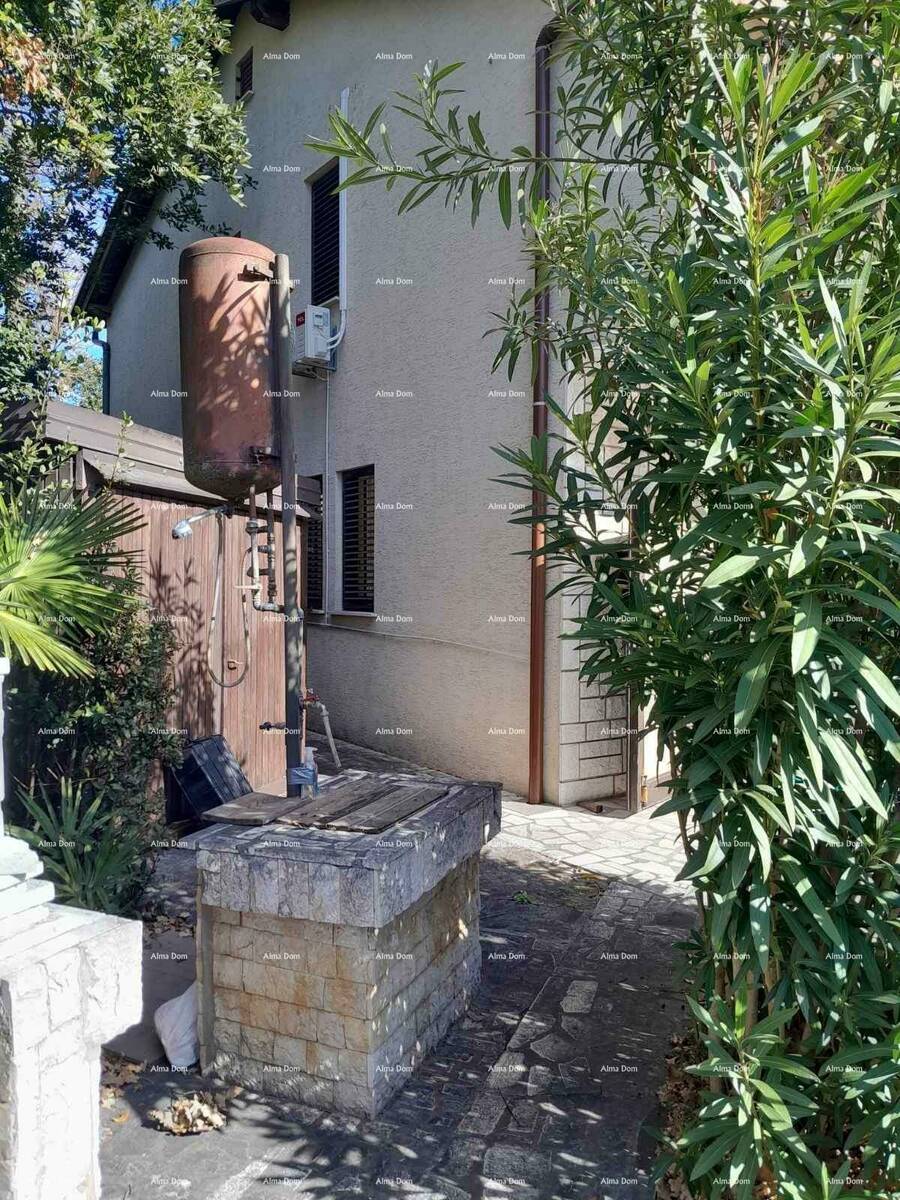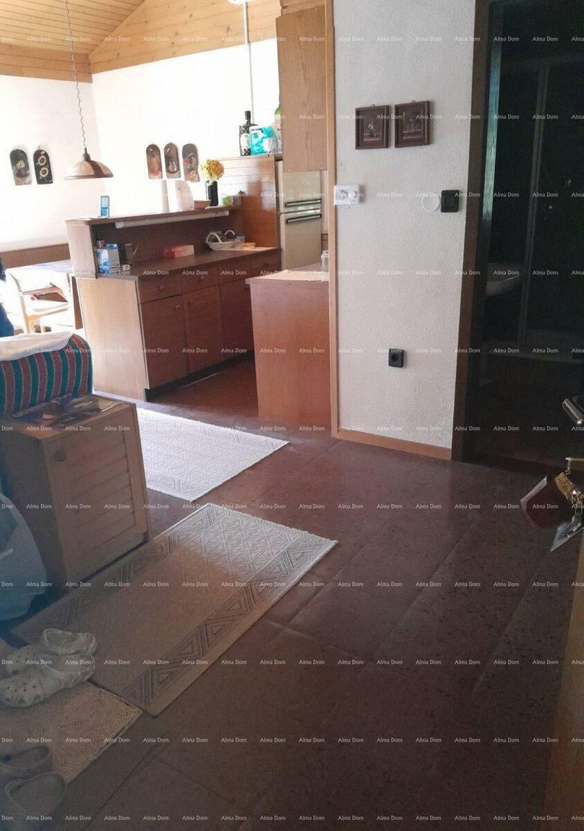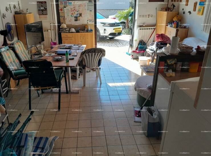 Kuca je površine 110 m2 a vrt 100 m2. Pola kuce prodaje se u vertikali s lijeve strane kuće. Prizemlje ima ulaz, dnevni boravak sa kuhinjom, spavaću sobu, na katu je isti raspored, osim sto je uz plafon napravljen mali podest s stepenicama i smjesten krevet. Kat posjeduje i balkon.