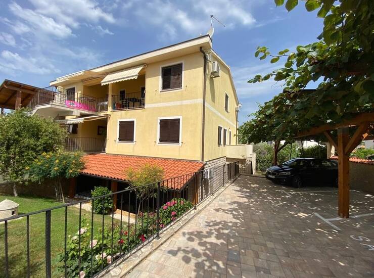 U ponudi imamo apartmansku kuću na tri etaže, u prizemlju su 3 studio apartmana, 1. kat je prostrani stan a 2. kat je podijeljen po pola s 2 zrcalno okrenuta stana.