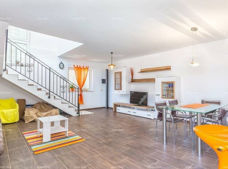U prizemlju je ulazni hodnik, kupaonica, kuhinja s blagavaonicom te dnevnim boravkom.