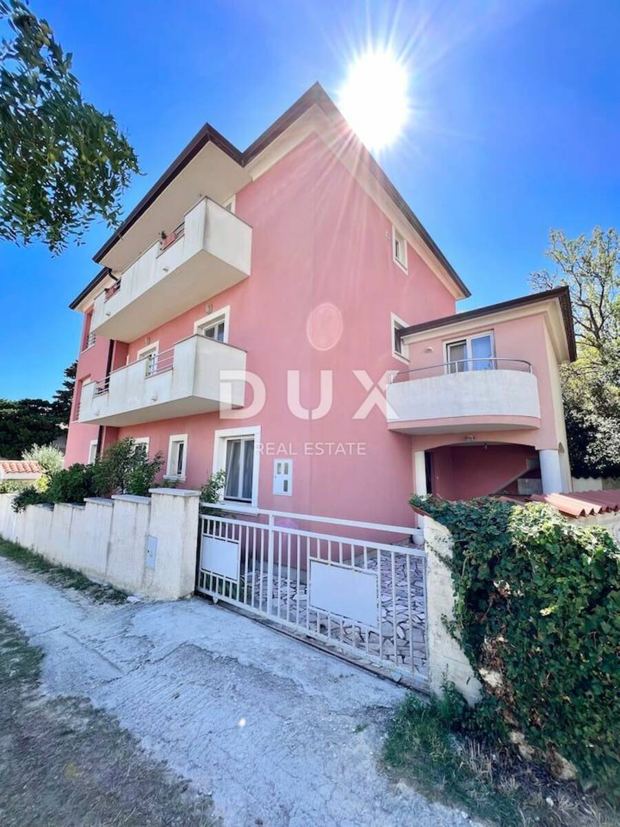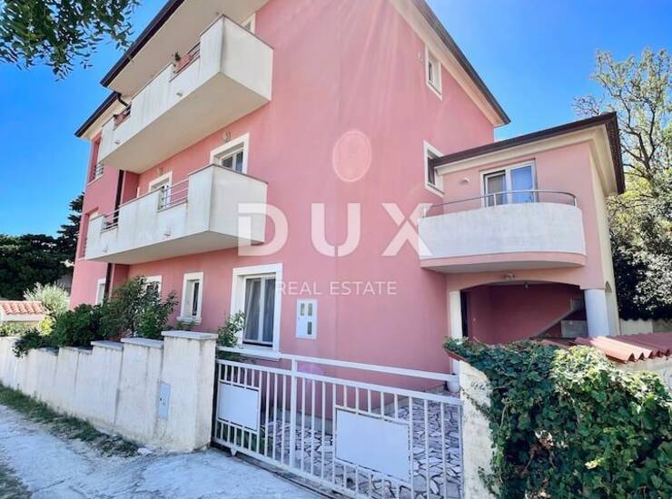 Prvi apartman u prizemlju proteže se na 2 etaže i sastoji se od dnevnog boravka, kuhinje, blagovaonice, 2 spavaće sobe, 2 terase te 2 kupaonice s WC-om - ukupne stambene površine cca 60m2. Na prvoj etaži se nalazi vanjska natkrivena terasa te se na drugoj etaži iz spavaće sobe izlazi na drugu terasu.