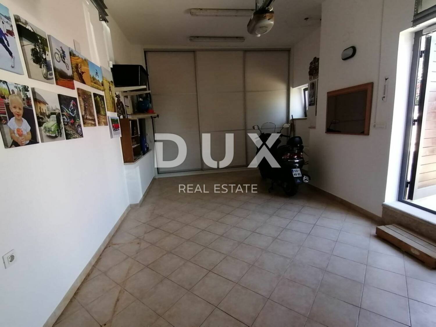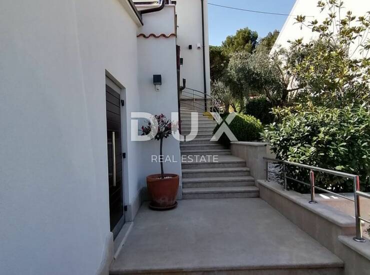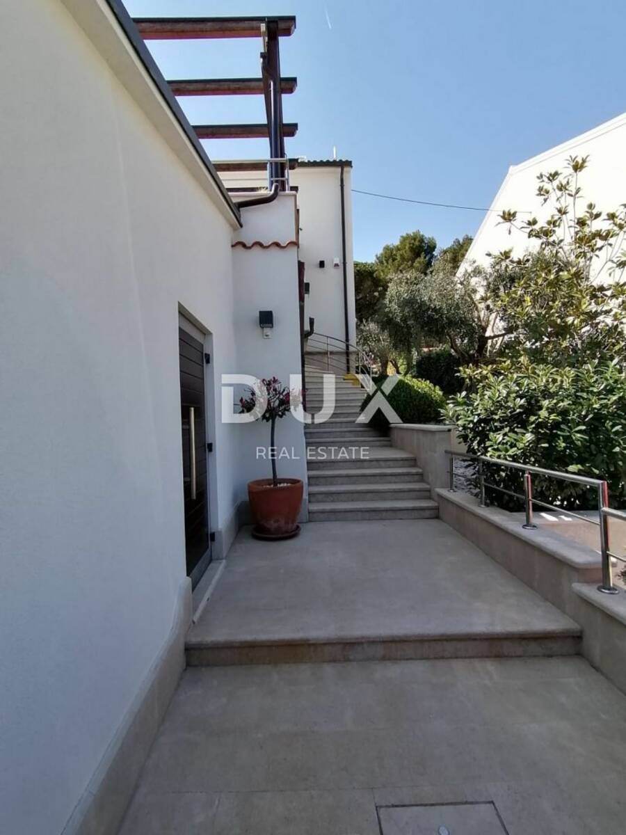 Na udaljenosti od svega 400m od plaže, prodaje se kuća u rezidencijalnom naselju sa pogledom na more. Smjestila se na parceli površine 202m2, a proteže se kroz tri etaže. U suterenu se nalazi velika garaža 53m2 za dva automobila. U prizemlju kuće smjestio se dnevni boravak, prostrana terasa od 25 m2 sa tendom na senzor za vjetar te 4 bočne tende na daljinsko upravljanje koje pružaju ukućanima intmu dok borave na njoj, hodnik, jedna spavaća soba, još jedan veliki boravak, kuhinja i blagovaonica iz koje se izlazi na stražnji dio kuće. Unutarnjim stepenicama penjemo se na prvi kat kuće gdje su se smjestile tri spavaće sobe, terasa sa koje se pruža predivan pogled na more te jedna velika kupaonica. Kuća ima dodatnu prostoriju u kojoj