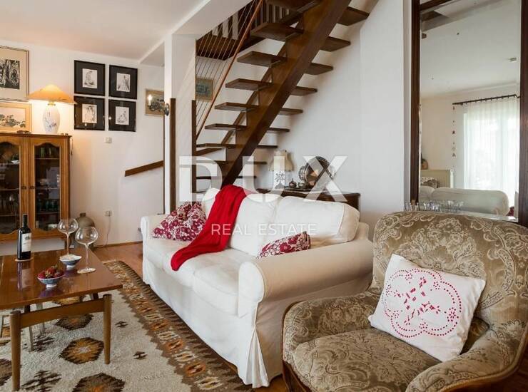 U dnevnom boravku smještene su stepenice koje nas potom vode do drugog kata kuće, gdje se nalaze tri prostrane spavaće sobe i veća terasa s predivnim, panoramski pogled na more i kvarnerska otočja. Na ovome katu nalaze se još i dvije kupaonice. Spavaćim je sobama moguće pristupiti, osim iz dnevnog boravka, i vanjskim stubištem, čime se postigla savršena privatnost.
