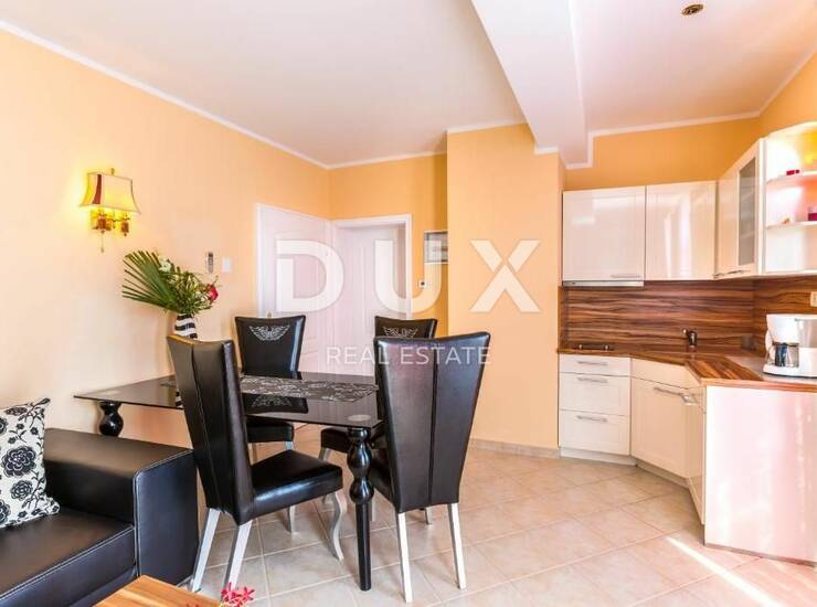 Kuća leži na površini od 784 m2. U njoj se nalaze 4 apartmana, u suterenu manji stan, a u prizemlju komforan stan koji se sastoji od dnevnog boravka, blagovaone s kuhinjom, 2 spavaće sobe, kupaona s dodatnim wc-om te velika terasa s izlazom na bazen. Na prvom katu se nalaze dva studio apartmana, a na drugom katu je još jedan apartman.