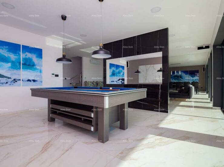 Stambena površina 480m2. U prizemlju se nalazi dnevni boravak, kuhinja, sala za bilijar, gostinjski toalet. Na 1. katu su četiri spavaćih soba, svaka soba ima svoje kupatilo i pogled na more. Iz svake sobe izlaz na veliku terasu. Na 2.katu je još jedna spavaća soba s pogledom na more, teretana, jacuzzi, sauna, velika terasa.