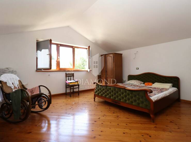 -Prvi kat: ogromna spavaća soba, kupaonica, dnevni boravak i kuhinja s izlazom na terasu (u roh-bau fazi).