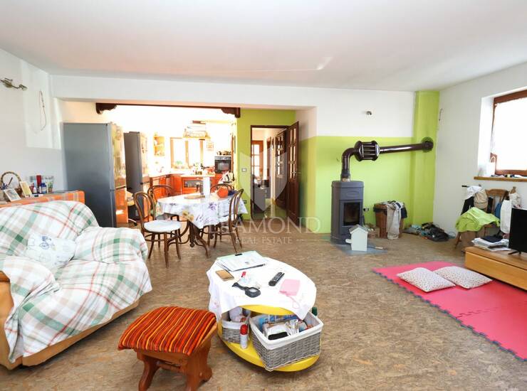 -Prizemlje: hodnik, kuhinja s blagovaonicom, veliki dnevni boravak s izlazom u dvorište, kupaonica i ostava.