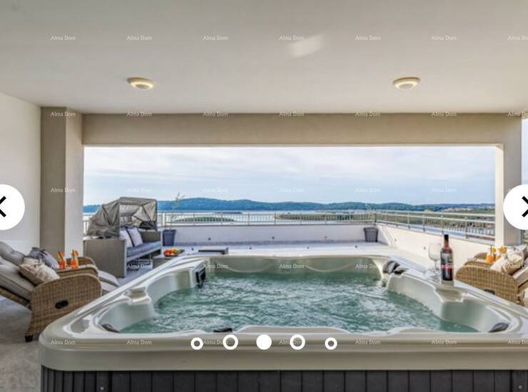 Na drugom katu se nalazi terasa preko cijelog kata, u natkrivenom dijelu su jaccuzzi, sauna te ljetna kuhinja.