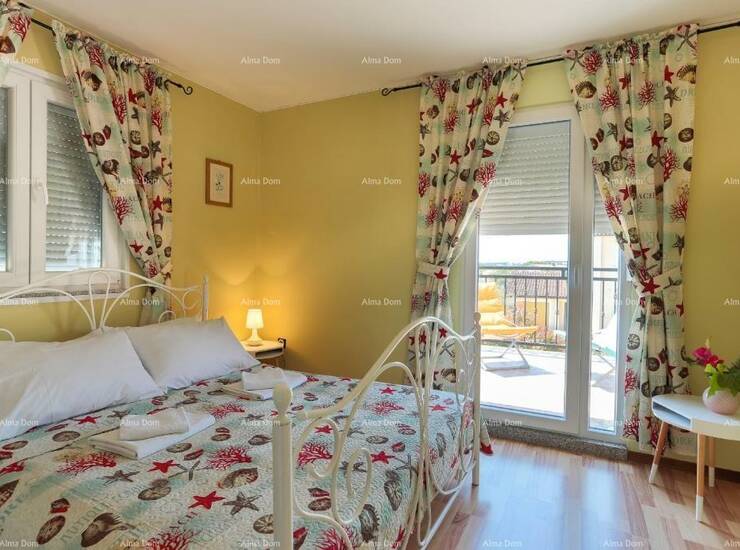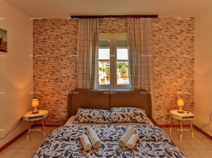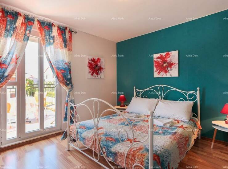 Na katu je veliki stan od 150 kvadrata koji se sastoji od 4 spavaće sobe, 3 kupaonice, hodnika, kuhinje s blagavaonciom te dnevnim botravkom i terasom.