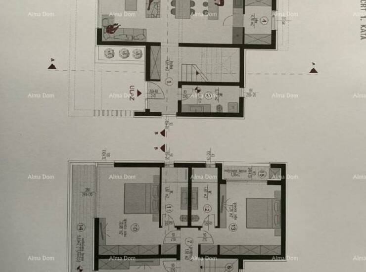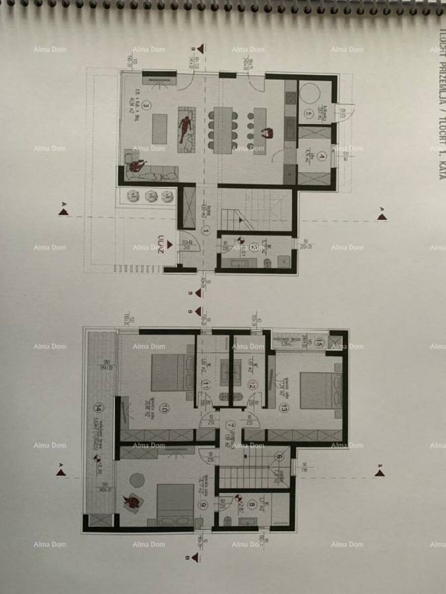 Kuća se sastojati od velike kuhinje i dnevnog boravka u prizemlju, izlaz na terasu i bazen, a na katu se nalaze tri spavaće sobe, svaka sa vlastitim kupatilom i velikom terasom.