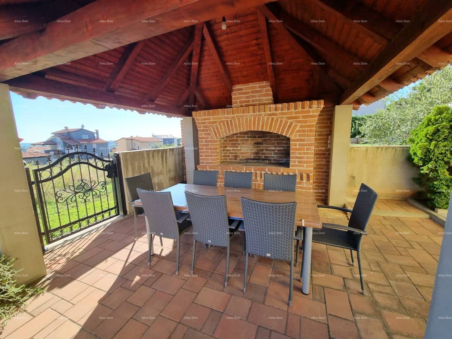 U dvorištu je nadstrešnica s velikim stolom te roštiljem, za druženje.