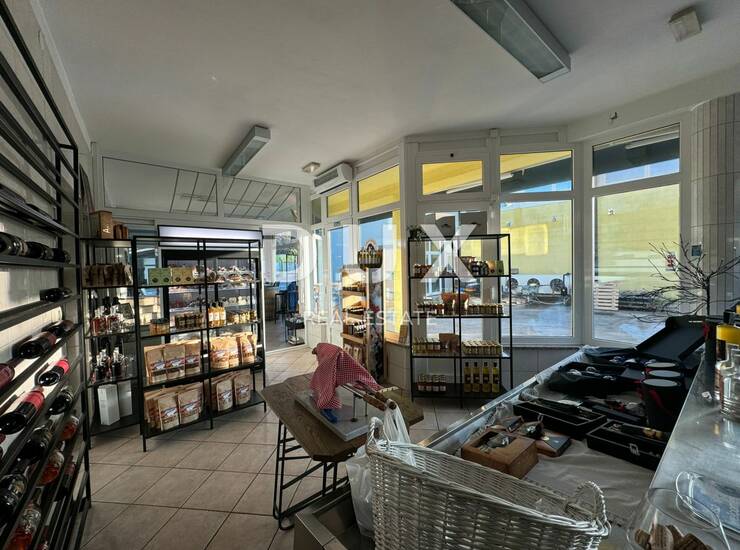 U prizemlju se nalazi trgovina opremljena pultom, policama, frižiderima i svime što je potrebno za nastavak poslovanja. Također na istoj etaži je uredski dio, sanitarni čvor, prostorija za dodatni uredski prostor, garderobu ili slično. Dok su u drugom djelu prizemlja dvije komore minus režim, jedna komora plus režim te ledomat ljuskastog leda 8 t/24 h.