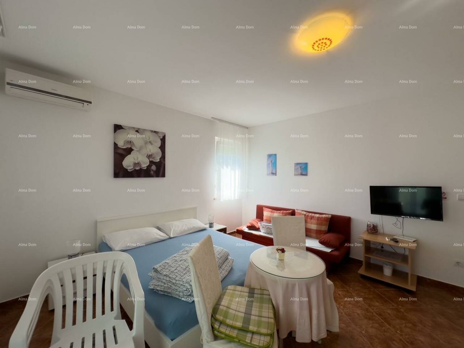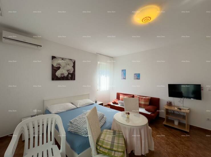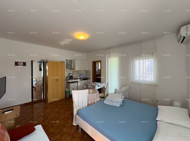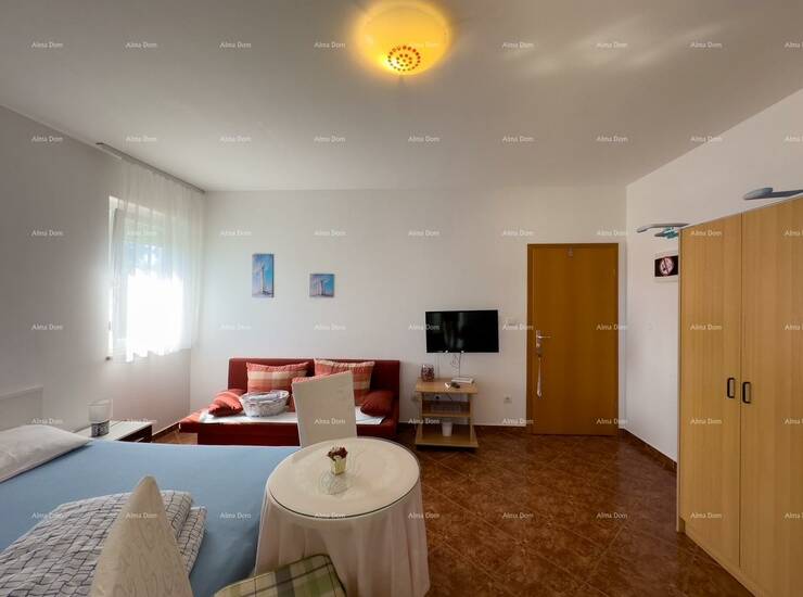 Sastoji se od kupatila, jedne velike prostorije u kojoj je kuhinja, dnevni i krevet za spavanje iz koje se izlazi na terasu.