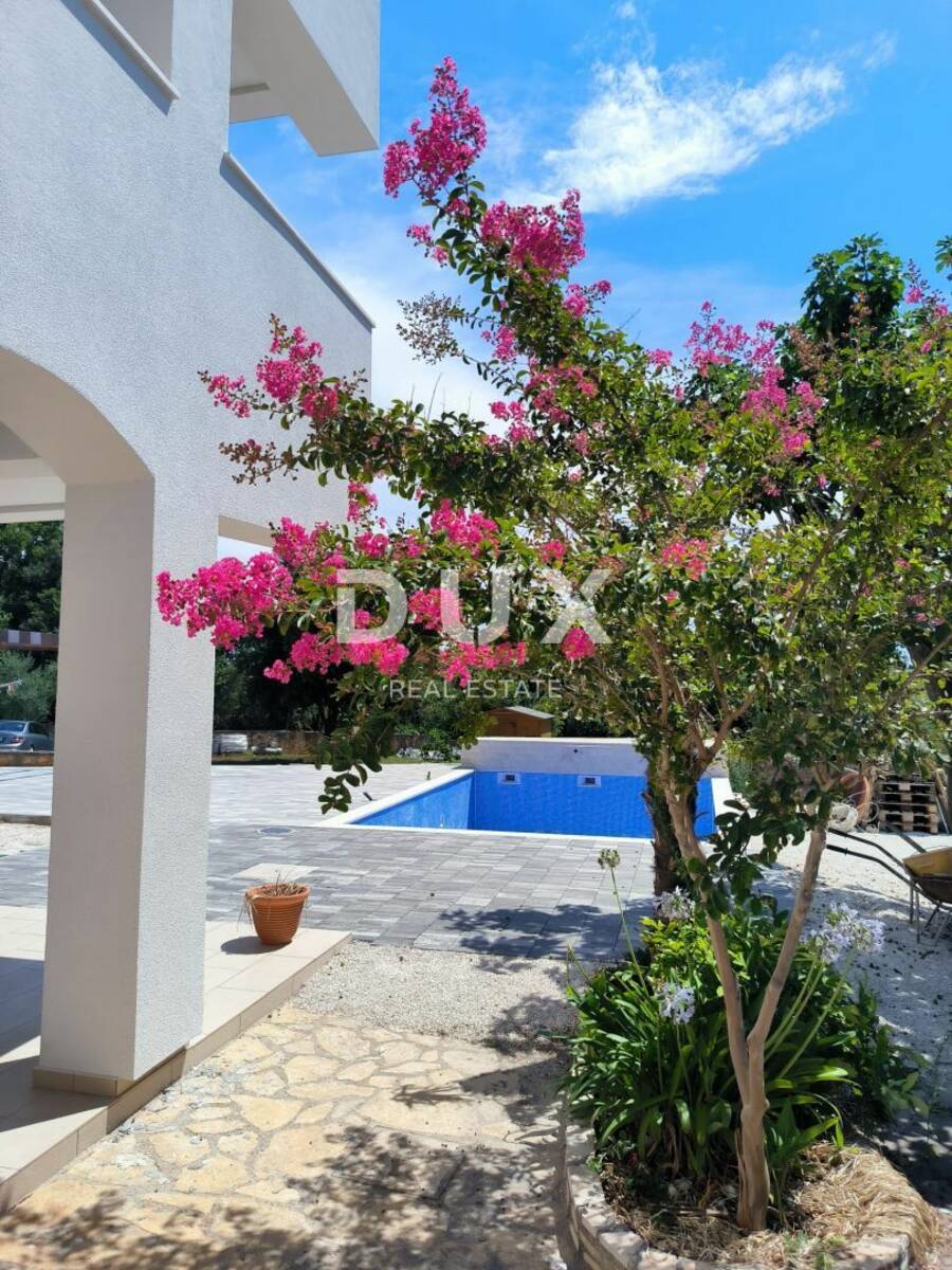 Stan se nalazi u kompletno renoviranoj kući koja se podijelila na 3 velika prostrana stana , te svaki od stanova ima pravo korištenja zajedničkog bazena.