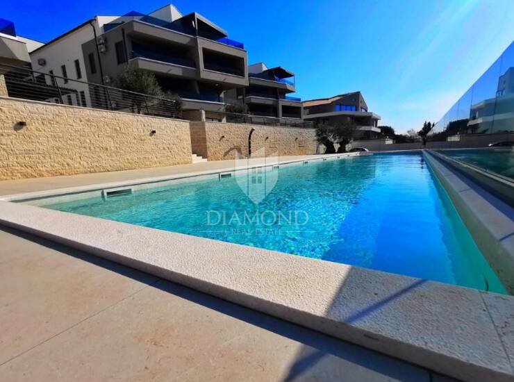 Stan se nalazi na prvome katu ekskluzivne stambene zgrade sa zajedničkim bazenom, idealnim za opuštanje i uživanje tijekom toplih ljetnih dana.