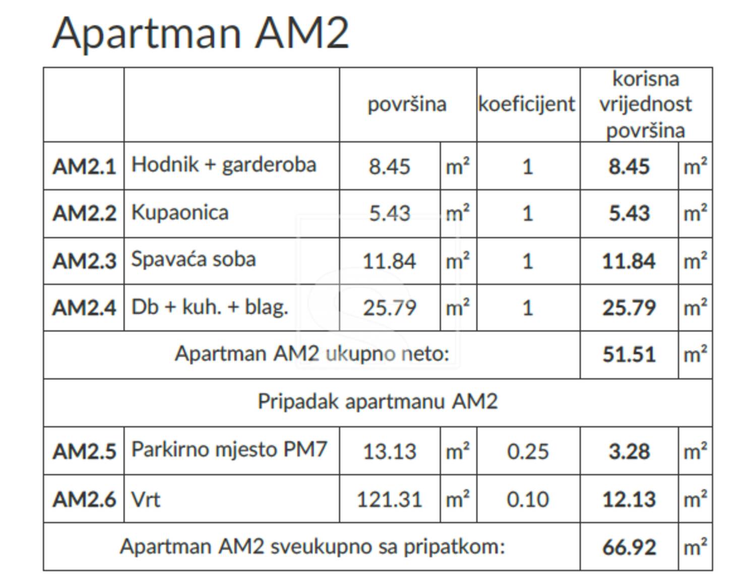 Stanovi su različitih površina i kvadratura te tako imamo nekoliko stanova s jednom spavaćom sobom (1S+DB) te nekoliko stanova s dvije spavaće sobe (2S+DB). Svakom stanu pripada po jedno parkirno mjesto smješteno ispred same zgrade.