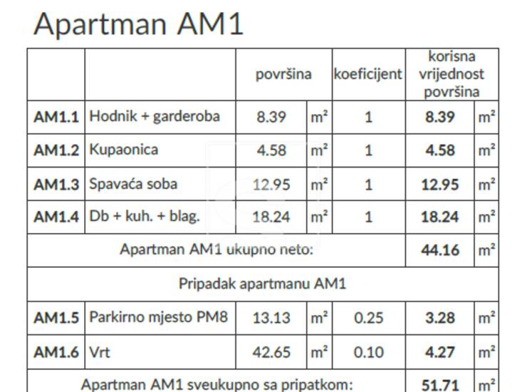 Stanovi su različitih površina i kvadratura te tako imamo nekoliko stanova s jednom spavaćom sobom (1S+DB) te nekoliko stanova s dvije spavaće sobe (2S+DB). Svakom stanu pripada po jedno parkirno mjesto smješteno ispred same zgrade.
