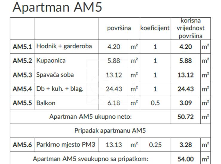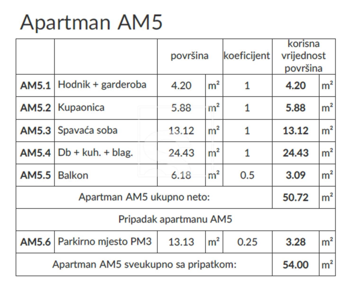 Stanovi su različitih površina i kvadratura te tako imamo nekoliko stanova s jednom spavaćom sobom (1S+DB) te nekoliko stanova s dvije spavaće sobe (2S+DB). Svakom stanu pripada po jedno parkirno mjesto smješteno ispred same zgrade.