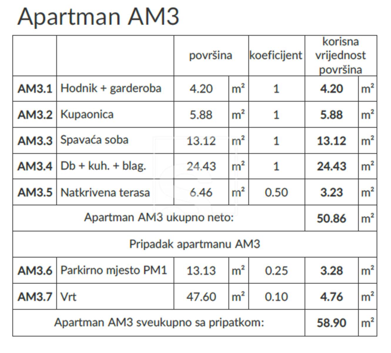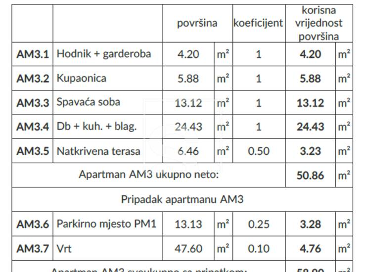 Stanovi su različitih površina i kvadratura te tako imamo nekoliko stanova s jednom spavaćom sobom (1S+DB) te nekoliko stanova s dvije spavaće sobe (2S+DB). Svakom stanu pripada po jedno parkirno mjesto smješteno ispred same zgrade.