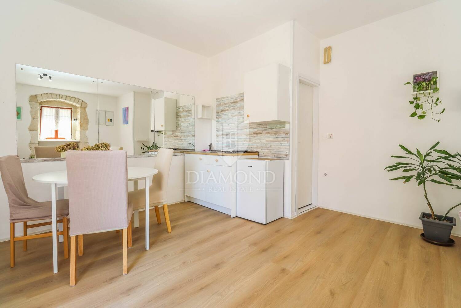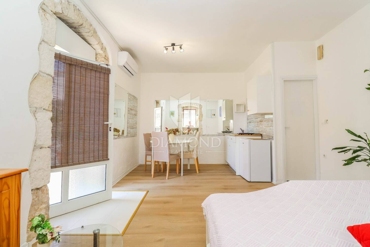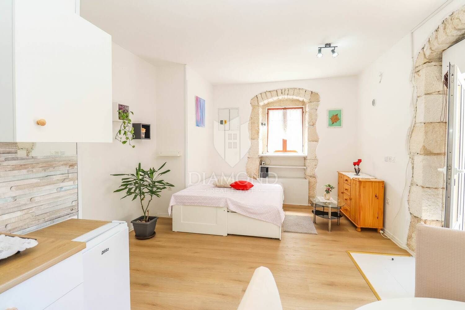 Stan je trenutno u fazi kompletne renovacije, koja uključuje nove podove, zidove, kupaonicu, instalacije struje i vode, te će biti u potpunosti moderno namješten i spreman za useljenje. Ove slike su prije nego što je krenula renovacija. Zahvaljujući svojoj poziciji i rasporedu, prostor se može koristiti kao studio apartman za turistički najam ili dugoročno stanovanje, ali i kao poslovni prostor, s obzirom na to da je u prošlosti već imao takvu namjenu.