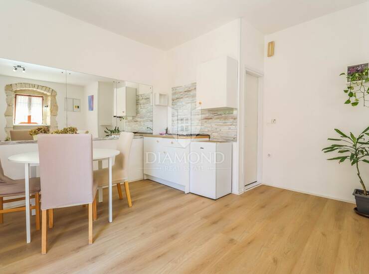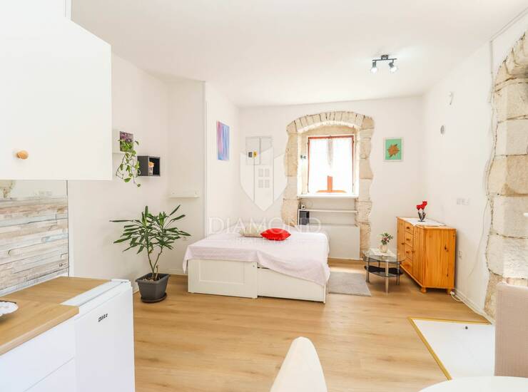 Na prodaju je studio apartman u samom centru Medulina, smješten u prizemlju zgrade, što ga čini idealnim kako za stanovanje, tako i za poslovnu namjenu. Nekretnina se nalazi na izuzetno atraktivnoj lokaciji, u blizini svih sadržaja i na nekoliko minuta od mora.