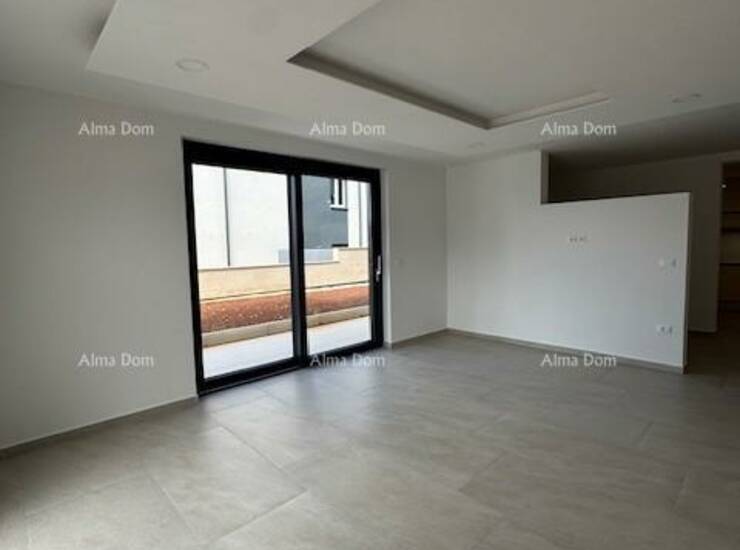 Stanu pripada vrt površine 90 m² s dvije strane zgrade, bazen sa grijanjem 24m2, 4 parkirna mjesta ispred zgrade te spremište.