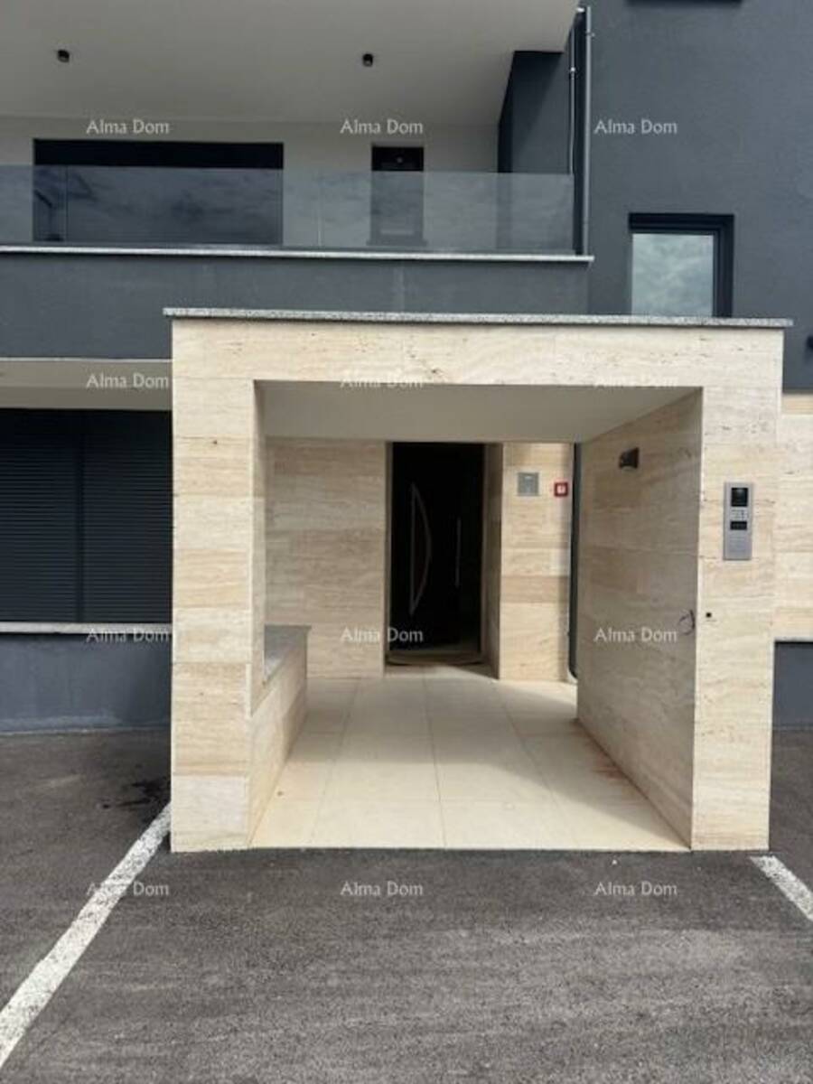 Stanu pripada vrt površine 90 m² s dvije strane zgrade, bazen sa grijanjem 24m2, 4 parkirna mjesta ispred zgrade te spremište.