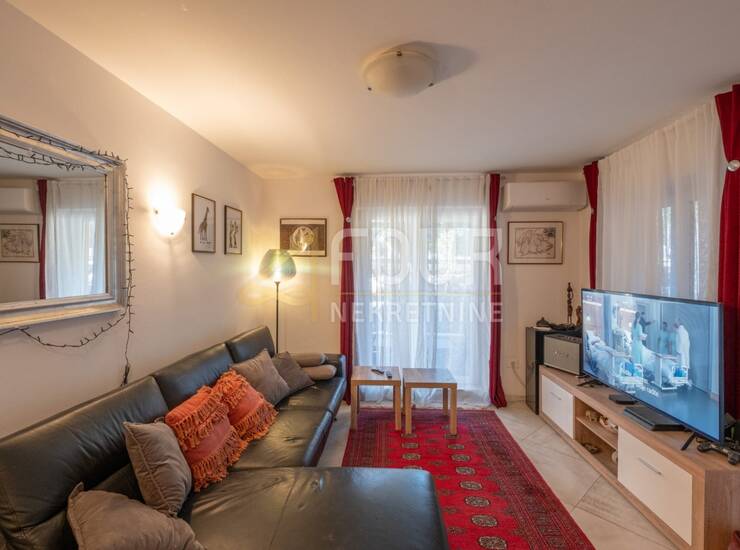 Posebnu vrijednost ovoj nekretnini daje velika terasa odnosno dio okućnice površine približno 50 m2 koji se koristi uz stan, idealan za boravak na otvorenom. Zgrada stanarima nudi i zajednički bazen na korištenje, što dodatno doprinosi kvaliteti boravka i atraktivnosti lokacije. Stanu pripada i vanjsko parkirno mjesto.