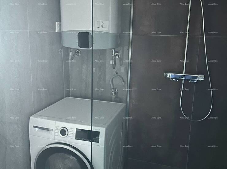 U ponudi je stan na 2. katu novogradnje. Sastoji se od ulaznog hodnika, kupaonice, dvije spavaće sobe svaka ima izlaz na terasu, kuhinje s blagavaonicom te dnevnim boravkom i terasom.