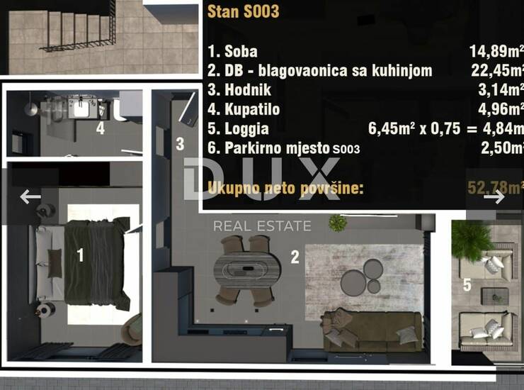 Medulin- Stan S2/ZG8, 102m2, 3 sobe, terasa, parking