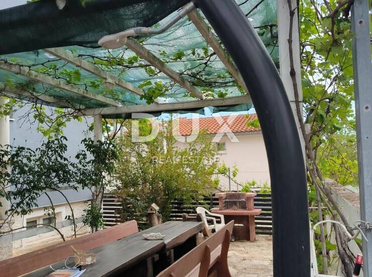 Kroz ograđenu kapiju ulazimo u dvorište unutar kojeg se smjestio bazen, garnitura za sjedenje te roštilj i iz istog stepenicama ulazimo u stan.
