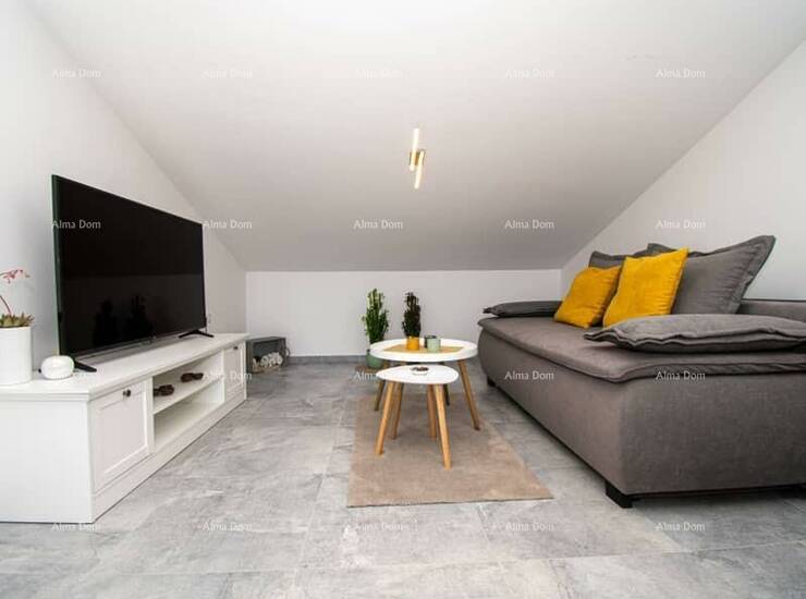 Moderno uređen i kompletno namješten apartman u novogradnji u naselju Mukalba. Apartman je 58 m2, sastoji se od hodnika, 1. spavaće sobe, kupaonice, kuhjinje sa dnevnim boravkom i velikom terasom 40 m2. Terasa je opremljena sa ležaljkama, roštiljem i blagavaonicom pruža sve što je potrebno za opuštajući i ugodan odmor. S terase je otvoreni fantastični pogled na more, otok Medulin .