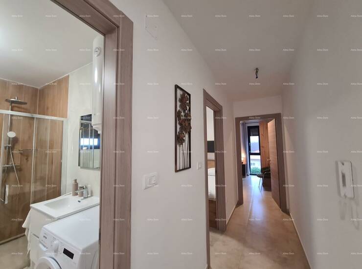 Stan je kompletno namješten i opremljen te se takav i prodaje, spreman za useljenje ili turistički najam bez dodatnih ulaganja. U svakoj spavaćoj sobi nalazi se klima uređaj, kao i u dnevnom boravku (ukupno tri klima uređaja), dok je na parkirnom mjestu postavljena priprema za punjenje električnih automobila.