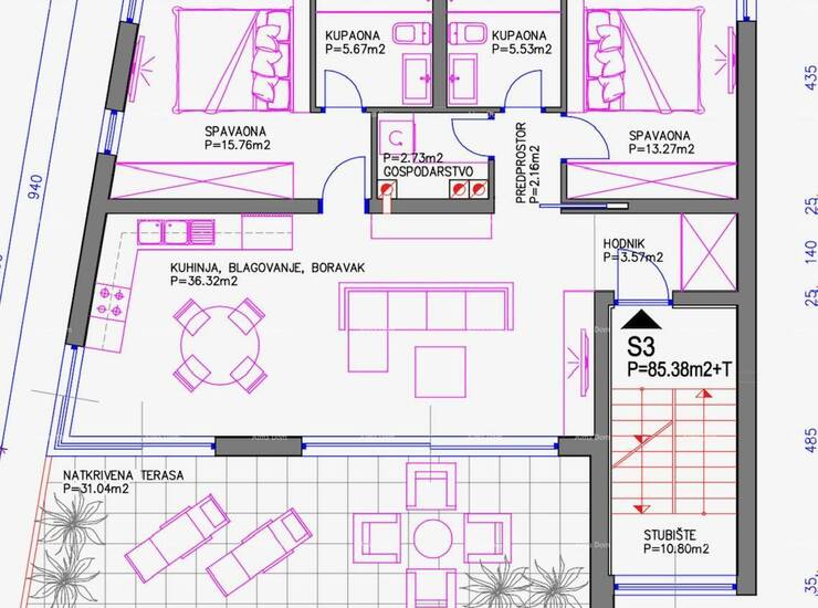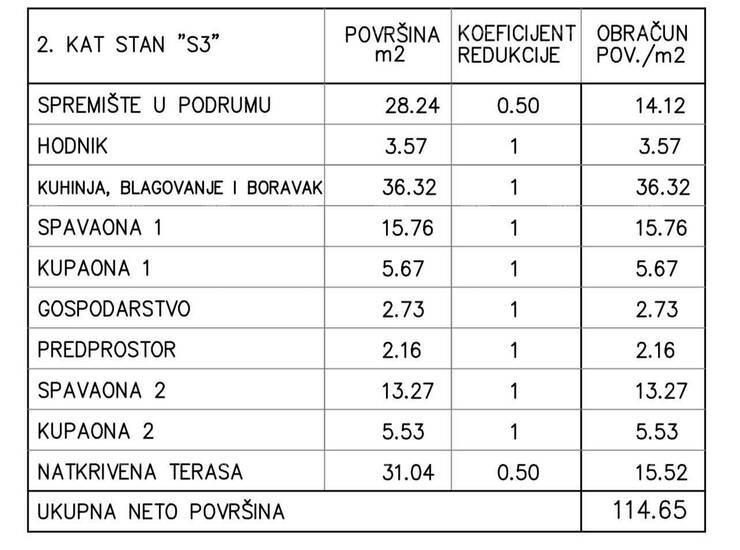 Stan 3 nalazi se na 2.katu zgrade, neto površine 144.29 m2.