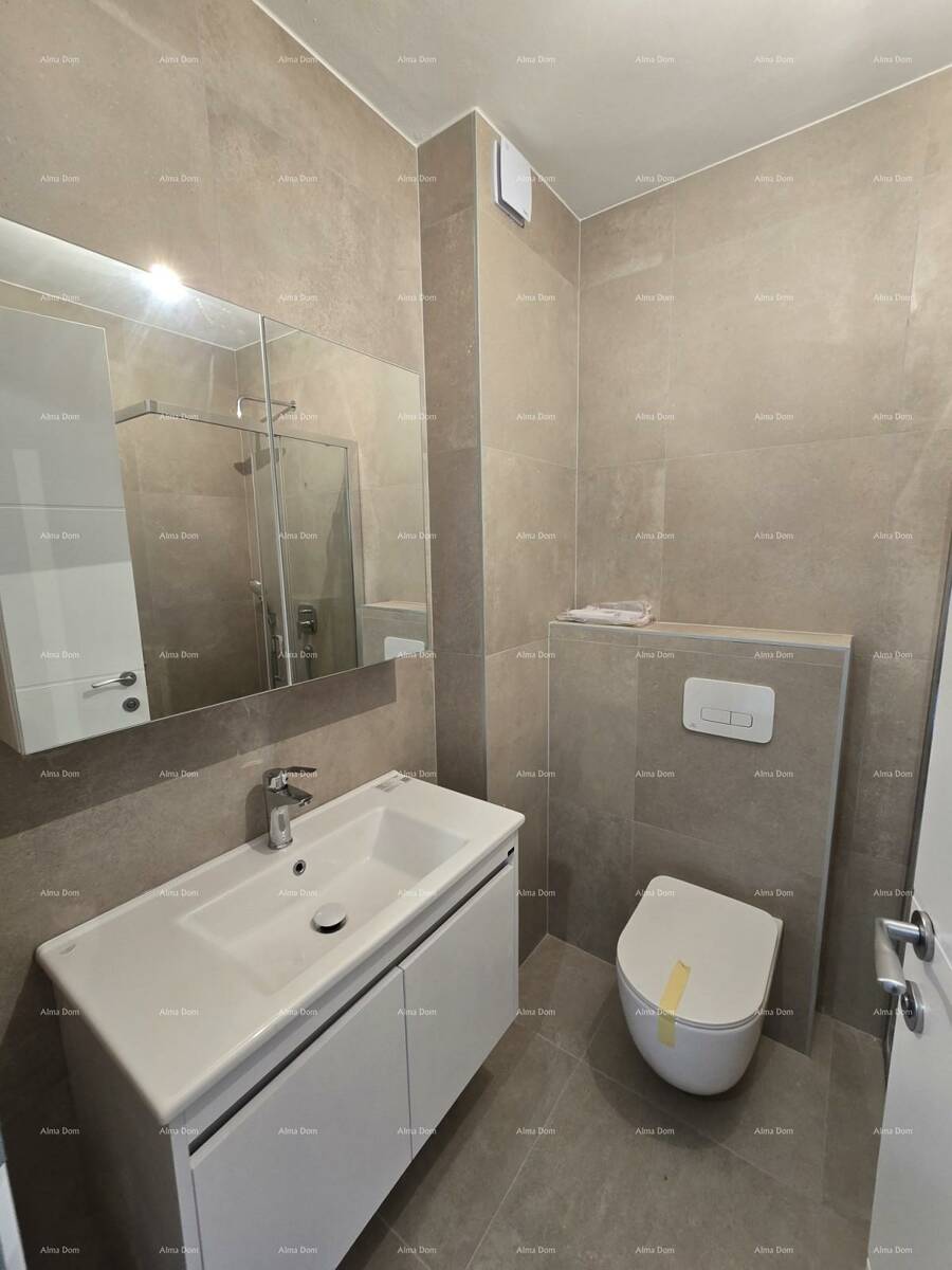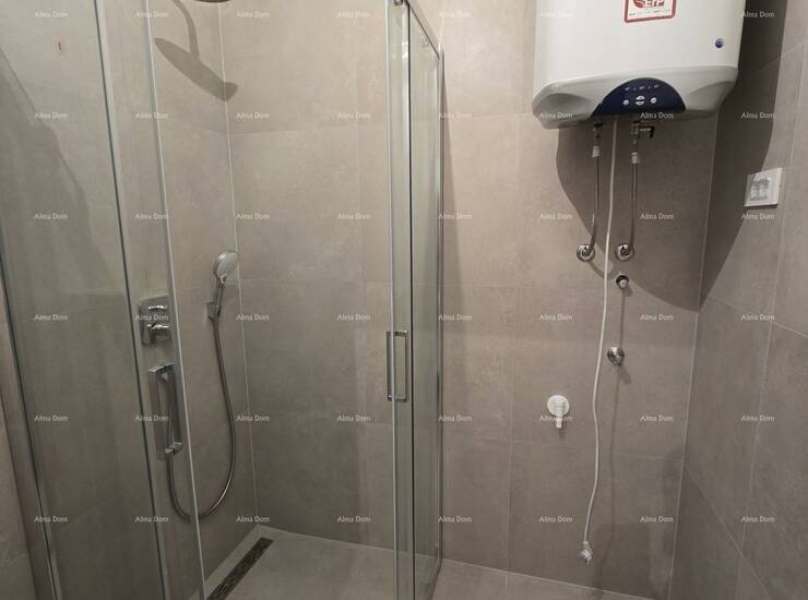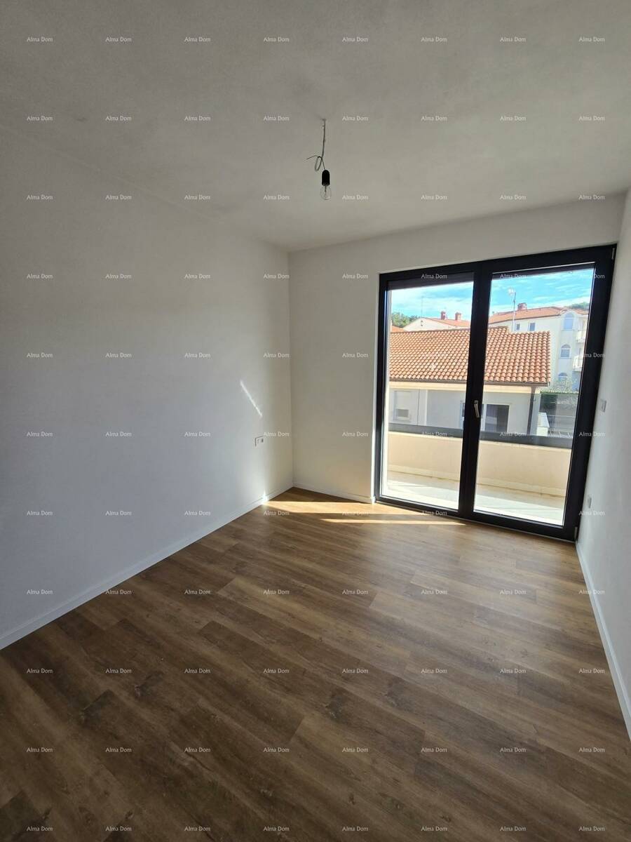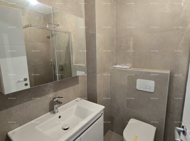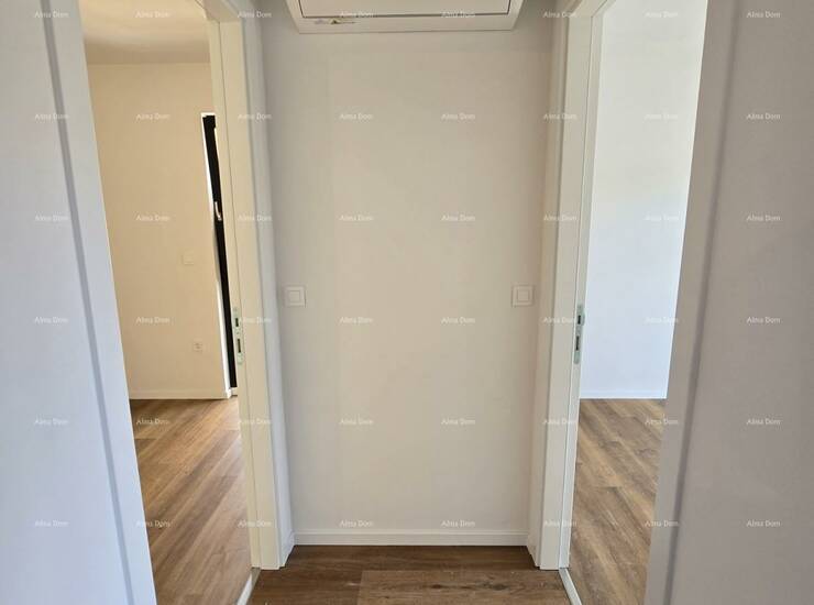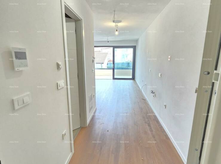 U ponudi je stan na 2. katu novogradnje koji se sastoji od hodnika s garderobom, kupaonice, dvije spavaće sobe, kuhinje s blagavaonicom te dnevnim boravkom i natkrivenom terasom.